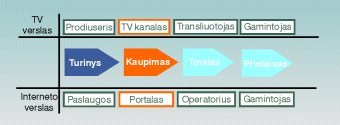 Interneto ir televizijos vertės grandinių palyginimas.
