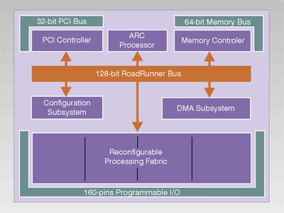 Mikroschemos širdis yra 32 bitų RISC, ARC tipo procesorius, kuris prijungtas prie 128 bitų magistralės. Be to, dar yra periferinė įranga: atminties valdymo grandinė, PCI valdymo grandinė DMA ir konfigūravimo grandinės. Visa tai kartu gali būti apibūdinama kaip procesorių audinys (fabric).