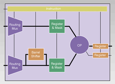 Kiekvienas "datapath unit" arba DPU yra duomenis apdorojantis modulis, galįs tiesiogiai atlikti C ir Verilog operacijas. Operacijos gali būti 8, 16 arba 32 bitų, be to, galima apdoroti du lygiagrečius 16 bitų srautus.