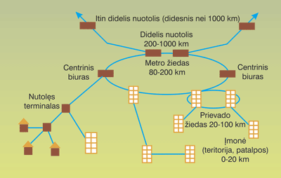 2 pav. Dabartinės tendencijos liudija, kad DWDM artėja arčiau vartotojo į kreipties žiedus, įmones ir atskirus pastatus.