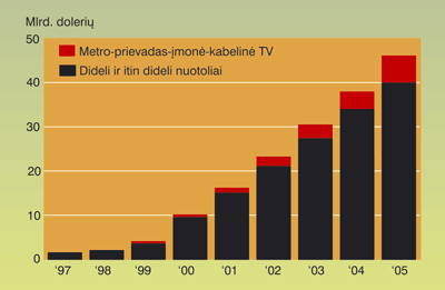 3 pav. Per artimiausius penkerius metus didelio nuotolio ir regioninių DWDM sistemų apimtis turėtų išaugti 35 proc., o vėlesniais metais šis augimas kiek sulėtės.