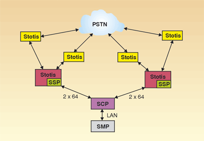 lokaliniame PSTN tinkle vartotojas naudojasi tam tikra paslauga C7. Signalizacijos pagalba stotį, prie kurios prijungtas vartotojas, pasiekia SCP ir C7 žinutės, siunčiamos į SSP (Service Switching Point - Paslaugų Pajungimo Taškas), ir suteikia paslaugą.