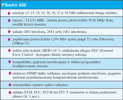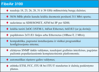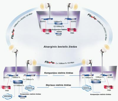 FibeAir pralaidos dydis yra nuo 45 Mb/s iki 622 Mb/s, todėl šie komponentai leidžia kompleksiškai išspręsti ir infrastruktūros, ir prievadų kūrimo klausimus, o juos naudojantys operatoriai gali greičiau pradėti gauti pajamas už savo teikiamas paslaugas. Šie gaminiai puikiai tinka kompanijų vidaus tinklams - intranetams, kai duomenų ir balso ryšiu tenka sujungti daugelį kompanijai priklausančių pastatų. FibeAir leidžia sukurti išbaigtą privatųjį tinklą, užtikrinantį balso bei duomenų ryšio suliejimą ir būtinas to ryšio saugos priemones. Kadangi kompanijos tinklas plečiasi, bevielio ryšio jungtys gali būti jungiamos į vientisą žiedą, šitaip padidinant tinklo dažnių juostą ir jungčių dubliavimą (žr. 2 pav.).