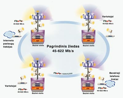 Didelis dažnių spektro panaudojimo efektyvumas daro FibeAir šeimos gaminius idealiais bevielio ryšio blokais tiems operatoriams, kurie kuria savuosius daugiataškius LMDS tinklus. FibeAir užtikrins tokiems tinklams didelės pralaidos jungtis su skaiduline optine magistrale arba tarp atskirų LMDS tinklo bazinių stočių. FibeAir suderinta su dauguma daugiataškio ryšio sistemų, o siūlomų dažnių įvairovė leidžia ją priderinti bet kuriam licencijuojamam spektro ruožui (žr. 3 pav.).