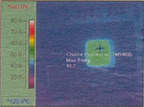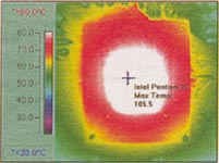 1 pav. Ankstesnieji "Pentium III" procesoriai suvartodavo palyginti didelę galią. DVD grojimo programa galėdavo pakelti lusto temperatūrą per 1000C.