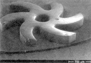 1 pav. Ši miniatiūrinė turbina tai mažos elektrinės, ateityje galėsiančios pakeisti mobiliųjų telefonų akumuliatorius, svarbiausia dalis.