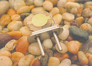 Jutiklio, reaguojančio į pokyčius, atitinkančius vienos molekulės storio sluoksnį, elementas. Priešingose 0,1 mm storio kvarco kristalo plokštelės pusėse yra du auksiniai elektrodai, kurie pjezoelektriškai sužadina kristalą.