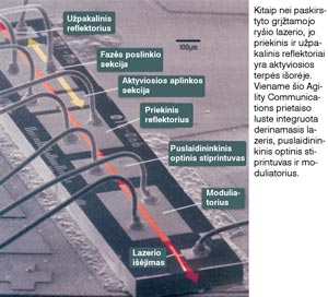 Paminėsime tik porą sėkmingai dirbančių šios srities kompanijų. Per pastaruosius dvejus metus Agility Communications Inc., įsikūrusi Kalifornijos valstijoje, Santa Barbaroje, pritraukė per 168 mln., o Bandwidth9 iš tos pačios valstijos Fremonto - 110 mln. dolerių investicijų. Abi kompanijos derinamųjų lazerių rinkai jau siūlo savo gaminius.