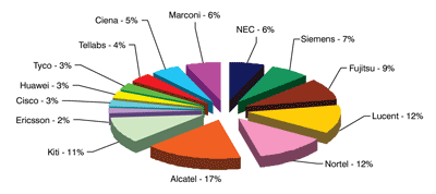 optinio ryšio tinklams gaminančias kompanijas. Jei prieš du su puse metų