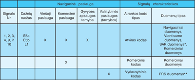 GALILEO sistemos palydovais perduodamų ir priimamų signalų