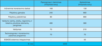 Išlaidos atskiroms GALILEO sistemos kūrimo fazėms yra