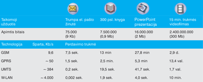 25 kartus platesnis nei GSM standarto. Maža to, šios technologijos