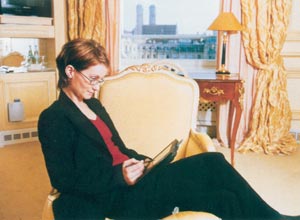 2 pav. W-LAN technologija idealiai tinka, jei būdami viešbutyje ar oro uoste norite radijo bangomis panaršyti po internetą arba prisijungti prie savo kompanijos tinklų. Čia matote Siemens instaliuotą Miuncheno viešbučio kambarį, kuriame mobiliojo ryšio tinklų kreipties įtaisas sumontuotas prie sienos.
