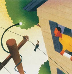 techniką, kuris linijos skaiduloms, kabančioms ant elektros stulpų, gali