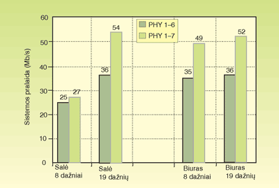 25-27 Mb/s. Biuro scenarijaus atveju taip pat pasiekiama beveik maksimali