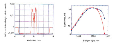 ASE slopinimą S juostoje, gavo 1500 nm bangos ilgiui 37 dB stiprinimą ir 5